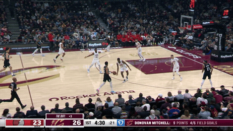 即使克林根比杨瀚森运动能力更好、传球能力更差,克林根在快攻时都是停在弧顶。我们可以清楚地看到:克林根刻意提前减速、停在弧顶,等着队友回球接应。我们也可以看到:在克林根接回球之后,开拓者的战术跑位非常流畅,因为这正是他们正常的战术安排,我们甚至可以把其视作开拓者战术跑位的启动点。