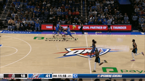 快攻只有拖后停弧顶这样一种跑位路线么?不是的。当中锋有冲击篮筐的机会时,开拓者也会布置去冲。问题在于:如果第一波冲没冲下来,中锋要去哪儿?