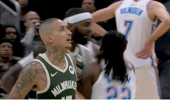 虎扑01月22日讯 今日NBA常规赛,雷霆客场对阵雄鹿。比赛第三节,波蒂斯先无球情况下肘倒华莱士,随后华莱士在走回替补席时还击波蒂斯,裁判判罚波蒂斯恶意犯规,华莱士技术犯规。来源:虎扑虎扑01月22日讯 今日NBA常规赛,雷霆客场对阵雄鹿。比赛第三节,波蒂斯先无球情况下肘倒华莱士,随后华莱...