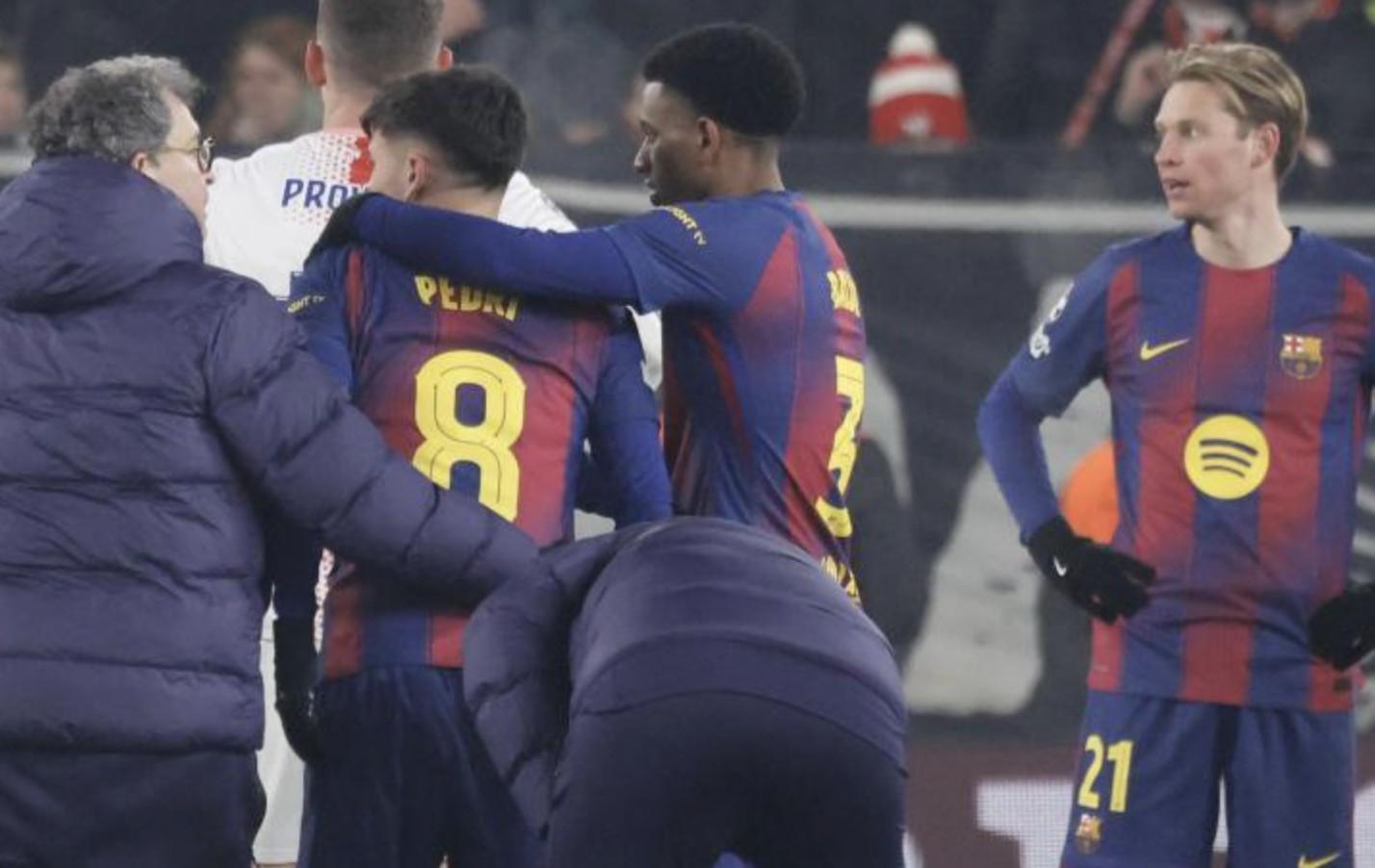 北京时间1月22日,欧冠联赛阶段第7轮,布拉格斯拉维亚2-4巴塞罗那。据《世界体育报》报道,巴萨球员佩德里的伤情不算严重。
